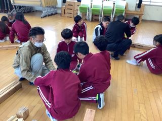 森林組合の方が来校し、組み立て方や機械の使い方をとても親切に教えてくれました。
