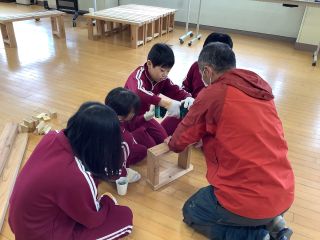 5年生が木工教室でベンチを作りました。