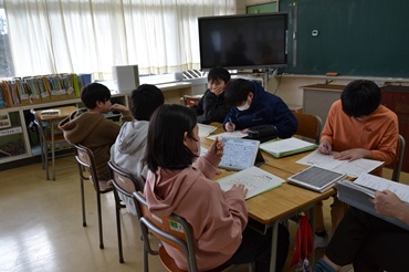 たてわり班ごとに分かれて、プログラムの内容と係分担について