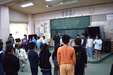 4月21日(火)に、音楽集会がありました。今年度初めての音楽集会でしたが、みんなで明るく元気に児童会の歌を歌いました。また、松島町内の校長先生が松島第五小学校に集まり、五小の子供たちの一生懸命に学習に取り組む姿を見ていただきました。