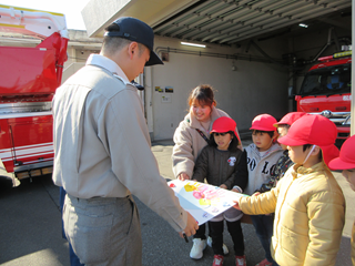 消防署の方々に感謝のプレゼントを渡しました