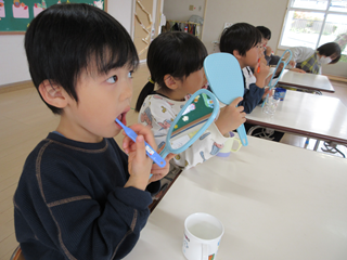 給食後、各クラス歯ブラシチェックも行いました!