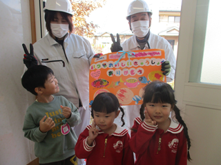 第五幼稚園のみんなで、身近な働く方々への感謝の気持ちを込めてプレゼント作りをして渡しました