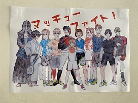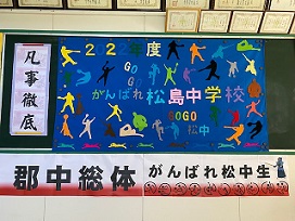 すばる学級の生徒や美術部、地域文化部が激励の応援旗やポスターを作成してくれました。廊下や階段に掲示してあり、選手がその思いを受け止めています。それぞれの思いを