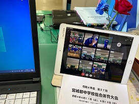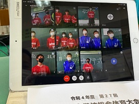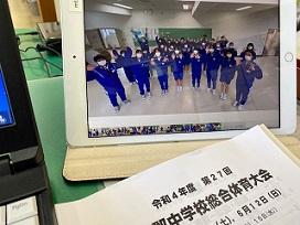 昨日、生徒会執行部が中心となって企画・運営した壮行式が行われました。コロナ禍にあり、開催が危ぶまれましたが、リモートでも互いの思いがしっかり伝わる壮行式となりました。執行部や各部長は本部で、選手・応援者は各教室で、応援団は体育館でそれぞれの思いを伝え合いました。また、
