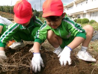 10月27日(月)2年生が学校園のサツマイモを収穫しました。