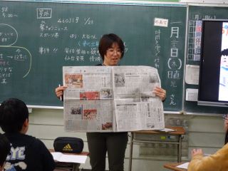 5年生は情報の学習の一環で1月10日に河北新聞社の印刷センターを見学しました。まとめをした子供たちから出てきた質問に、越中谷記者が答えてくれました。