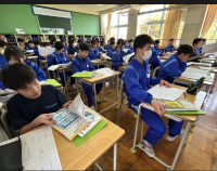 2.3年生の授業の様子です。2年生は「音楽」「数学」3年生は「国語」と「英語」です。授業の受け方や配布プリントの扱い方について説明などを受けた後、それぞれ学習に意欲的に取り組む様子が見られました。