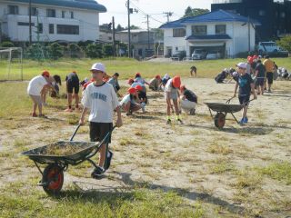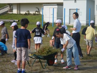 天気のいい日が多いので、校庭には大きく伸びた雑草がたくさん生えていましたが、全校のみんなで協力して除草を行いました。