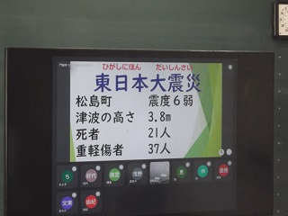 当時の松島の被害の様子が映し出され,落ちてくるもの,