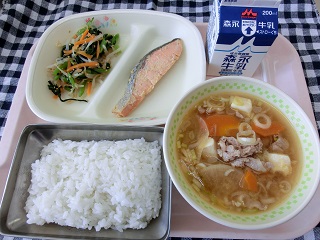 今日は、鮭のみそ焼きと豚汁で、タンパク質がたっぷりとれた美味しい献立でした。