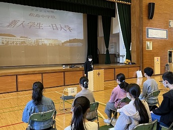 昨日、新入生を対象に一日入学を開催しました。永沼校長先生のお話や鹿野生徒会長の歓迎の言葉の後には、入学式の説明や中学校生活と部活動等についての説明しました。しっかりと話を聞けるその姿はとても頼もしく、希望に満ちあふれていました。