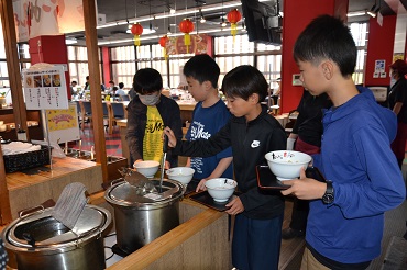 また、みんなで飯盛山を見学して、最後に絵付け体験をしました。