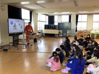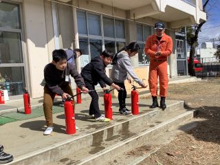 松島消防署の方が来て、火事が起こる原因等や校舎内にある消防施設について説明をしてくれました。