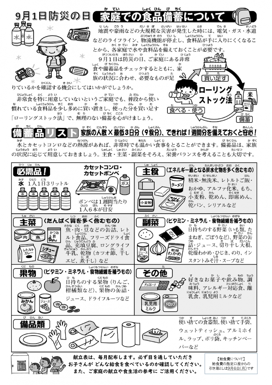 特に「一口メモ」では、その日の献立にまつわるお話を掲載しておりますので、様々な料理、色々な食材や栄養素等の知識、地域の食文化などを学ぶことができます。ぜひご覧いただき、ご家庭でも給食のお話や食に関する話題などで、児童生徒の「食への関心」を高めていただければ幸いに存じます。
