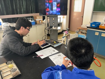 動画を見ながら火山の勉強をしています。