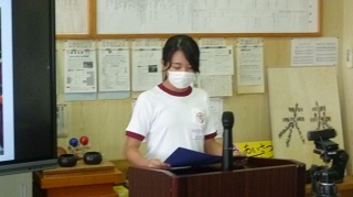 ▲一つは「いじめ防止動画コンクール」で優秀賞の表彰を受けた企画委員会の皆さんです!! 企画委員会委員長が「この表彰に恥じないようにこれからも全校の皆さんで仲良くしていきましょう!!」とスピーチしました!!