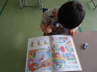 に丸をつけて交通安全の学習をしました。学年の実態に