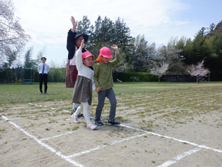 今日は年長さんが小学校へ行き
