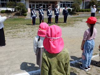 今日は年長さんが小学校へ行き