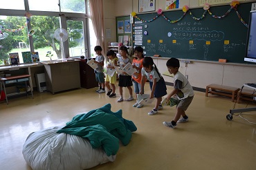 「おおきなかぶ」のお話をそれぞれの役割に分かれて音読しました。
