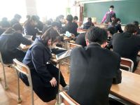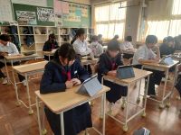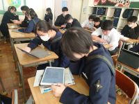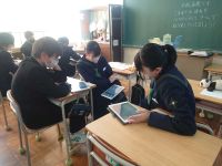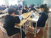本校では、毎週木曜日にNIE 活動を行っています。本日も、学習内容に関連した7つの記事の中から、ペアで一つの記事を選択し、感想や意見等を交換しました。NIE活動に対する生徒の意識も高まり、自分の考えをしっかり持ち、交流し合う様子が見られました。