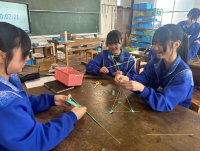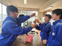 1年生の保健体育、技術、美術の授業の様子です。保健体育では、バレーボールのゲームを行っていました。技術では、つなぎ目や形を工夫しながら細い線材をより高く積み上げる活動を行っていました。美術では、各自制作したマグカップのデザインについての感想などを付箋に書きながら、班ごとに鑑賞会を行っていました。それぞれの授業において、互いに声を掛け合い協力し合いながら真剣に取り組む様子が見られました。