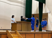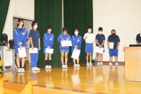 頑張りたいことについて報告がありました。その後、新人大会で勝ち取った賞状や各種コンクールでいただ