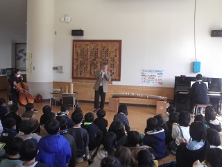 11日(月)の5時間目に1~4年生を対象に音楽鑑賞会を行いました。