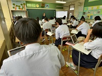 3年生の英語では、デジタル教科書と自分のノートを活用して