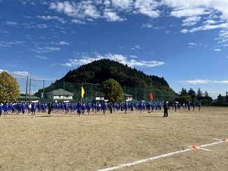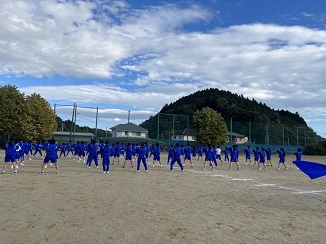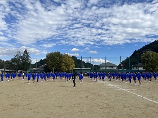 秋晴れの中、全体練習、学年練習、カラー練習が活気をみせています。