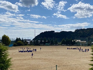 秋晴れの中、全体練習、学年練習、カラー練習が活気をみせています。