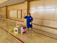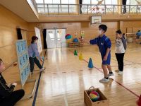 本日は松島町小中学校特支合同学習会でした。すばる学級の皆さんは事前にICTを活用して自己紹介カードを作成し、今日の活動を楽しみにしていました。小学校の体育館でアスレチックや的あてなどの活動に協力して取り組み、楽しく活動することができました。