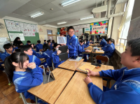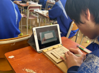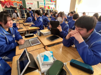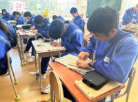 3年生の英語と美術の授業の様子です。英語では班で発表会を行っていました。美術ではスマホスタンドの仕上げとして、塗装を行っていました。どちらの授業も各自で工夫しながら活動をする様子が見られました。