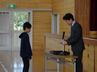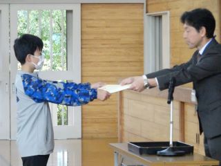 5日(火)の朝会は各種応募関係の表彰を行いました。