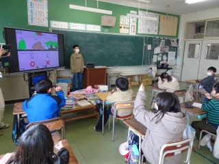4年生は、発表をしながらクイズを出すことで3年生