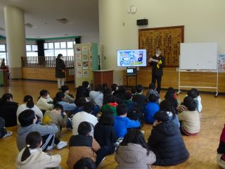 12日(木)4年生が総合的な学習で学んだ田中川の発表を3年生に行いました。