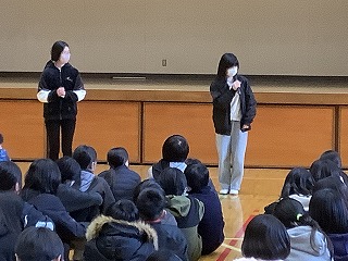 質問タイムでは中学校の生活や部活動について積極的に質問していました。