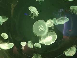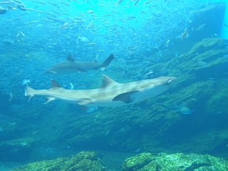 1学期に2年生が見学したときの「仙台うみの杜水族館」の写真を見ていただき,
