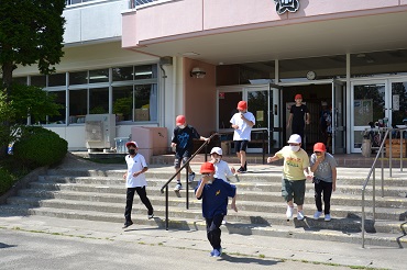 強い地震の後、火災が発生したという想定で避難訓練を行いました。