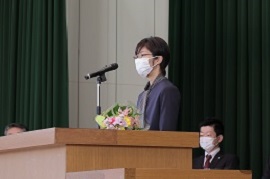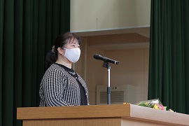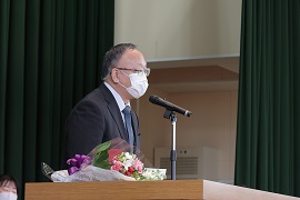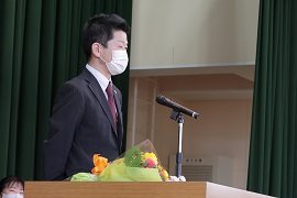 本日(29日)に離任式を行いました。今年度は,9名の先生が退職,転任で松島中学校を去ることになりました。9名の先生方,本当にありがとうございました。新天地での益々のご活躍をお祈りしております。離任式では、先生一人一人に送る言葉と花束を贈呈しました。