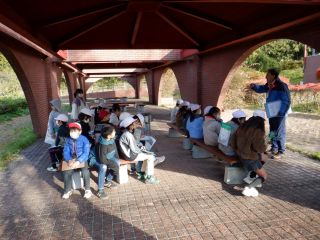 入口は木で見えにくくなっていたのですが、入口と同じ大きさになっている休憩所でボランティアさんの話を聞き、大きさを体感することができました。
