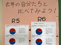 2年生では、事前アンケートの具体的なデータをもとに振り返りを行い、