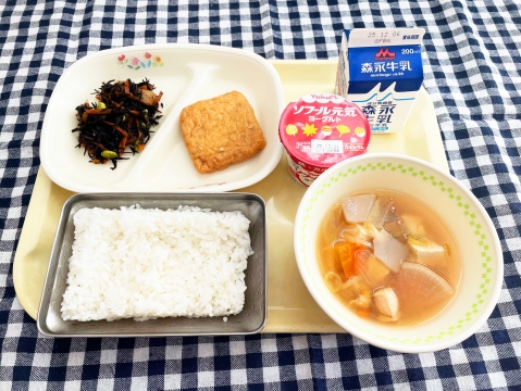 家庭ごとに使う材料が違うそうですが、今日の給食では、鮭、たら、たまねぎ、だいこん、にんじん、キャベツなどを使い、栄養たっぷりに仕上げました。
