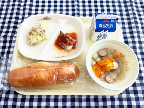 今日の地場産物は、松島産ごはん、松島産だいこん、松島産ねぎ、豚肉、牛乳です。