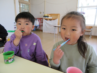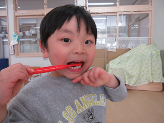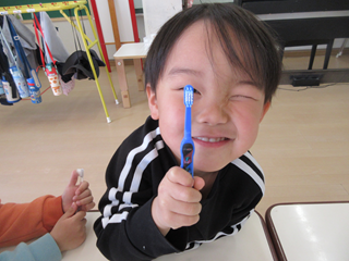 歯ブラシは、バーンの持ち方だったね