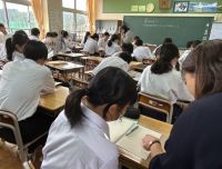 3年生の授業の様子です。1組は「英語」2組は「理科」です。それぞれの授業に意欲的に取り組んでいます。