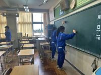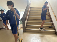 今日から各学年で教育相談が始まりました。そのため、昼休みに清掃を行っています。短時間ではありますが、丁寧に掃き掃除を行う様子が見られました。