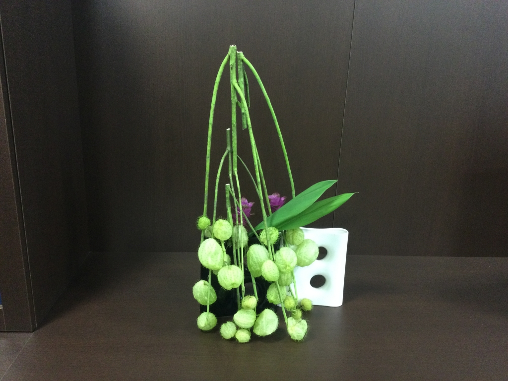 今回の生け花のテーマは、塊(マッス)と線の構成だそうです。