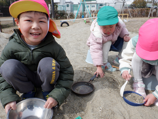 砂場では、お料理を作っていました
